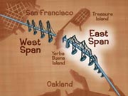 the West span, and a graphic comparing their differing geographic